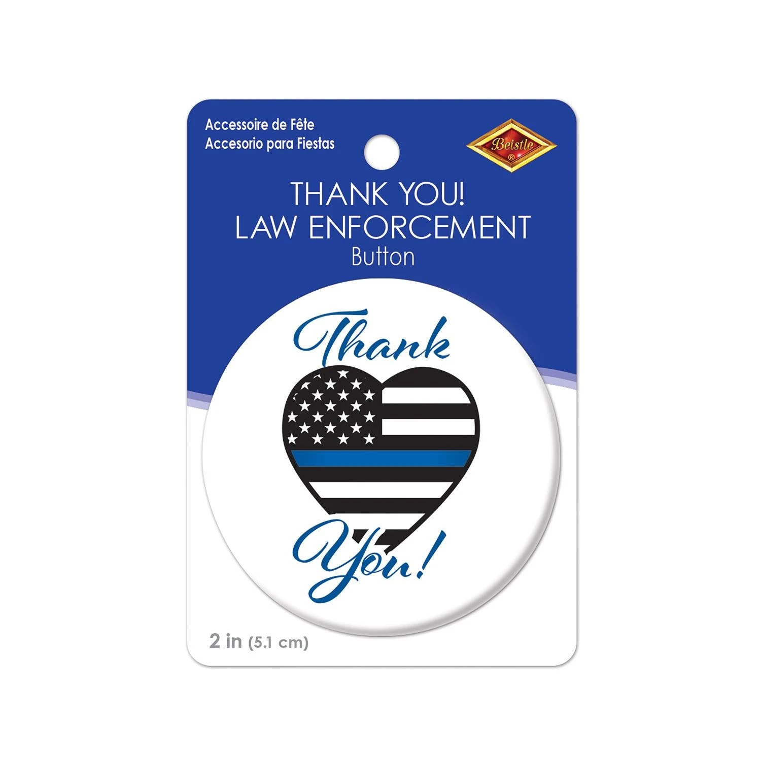 Product Description: Show your appreciation for law enforcement with the Thank You! Law Enforcement Button from BulkPartySupplies.com. This two-inch button is perfect for patriotic and 4th of July themed parties, diploma mill awards, and more. Each package contains one button, and it ships from Pennsylvania within one business day. Show your support for those who serve us and our communities with this stylish button. The Thank You! Law Enforcement Button is a great way to honor law enforcement officers and thank them for their service. Show your appreciation in style with this unique and meaningful button.