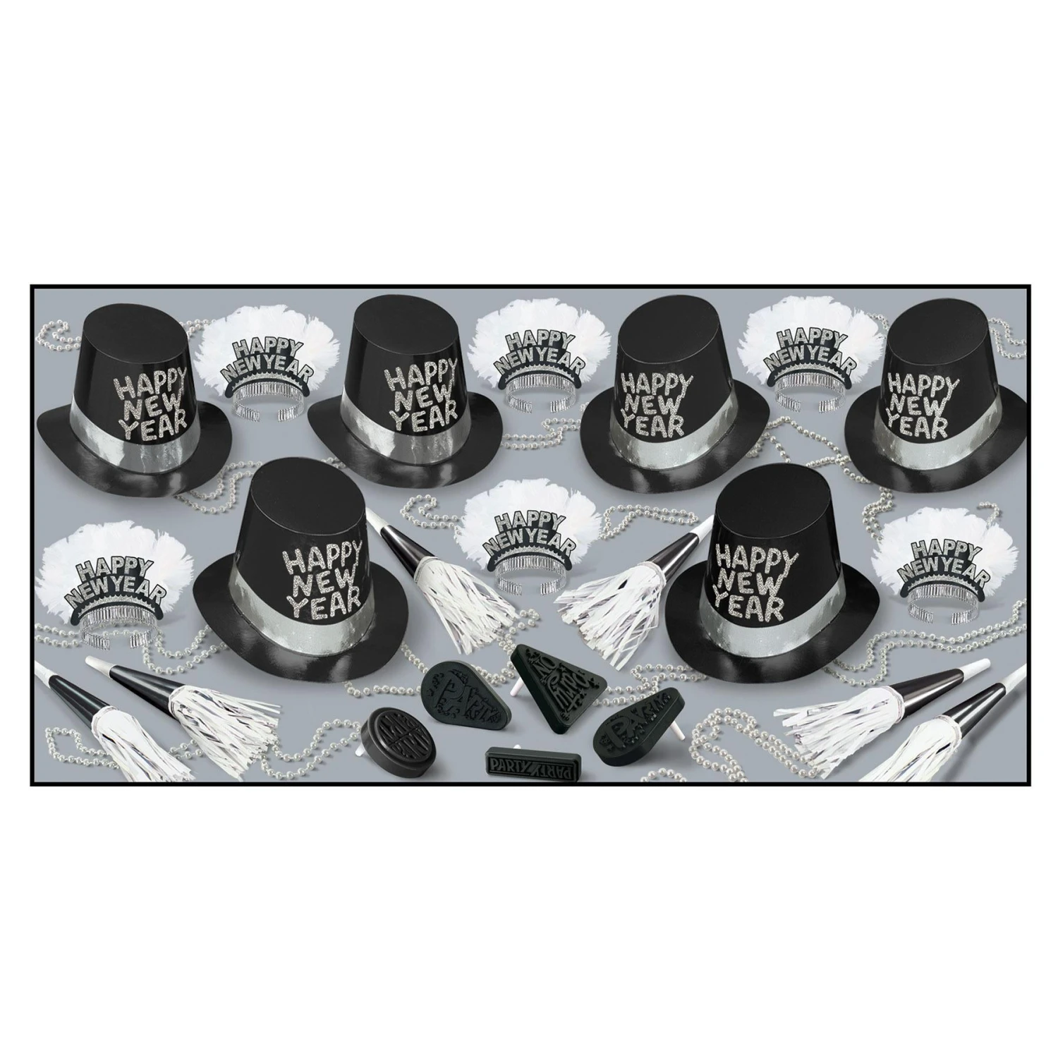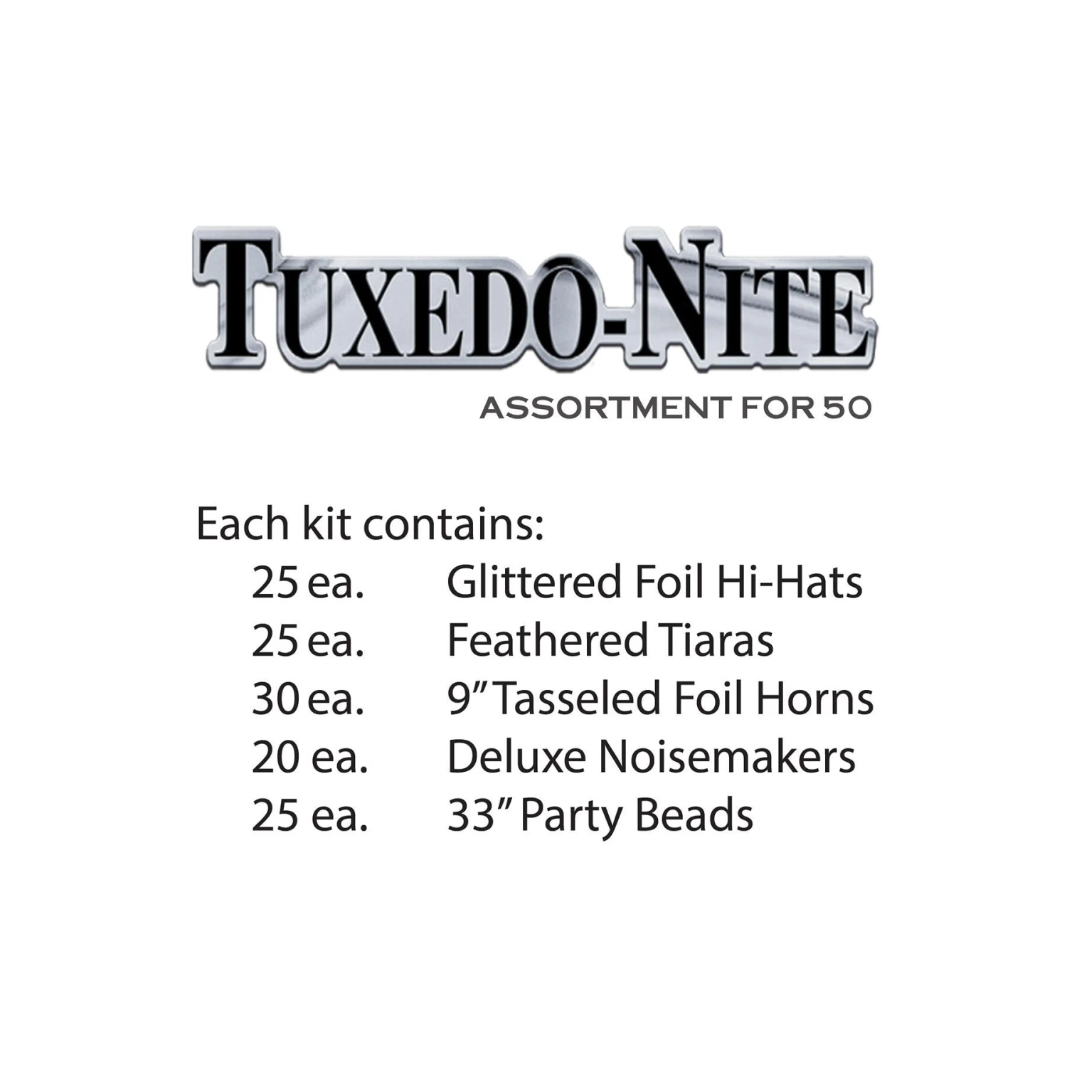 Celebrate the New Year in style with our Tuxedo-Nite New Year’s Eve Party Kit for 50 People from BulkPartySupplies.com! This party kit has everything you need to throw a fantastic New Year’s Eve bash. It includes 25 glittered foil hi-hats, 25 glittered feathered tiaras, 30 9-inch tasseled foil horns, 20 deluxe noisemakers, and 25 33-inch party bead necklaces. With all of these festive supplies, your guests will be ready to ring in the New Year with fun and flair. Plus, it ships quickly from our Pennsylvania warehouse, so you can get it in time for your big celebration!