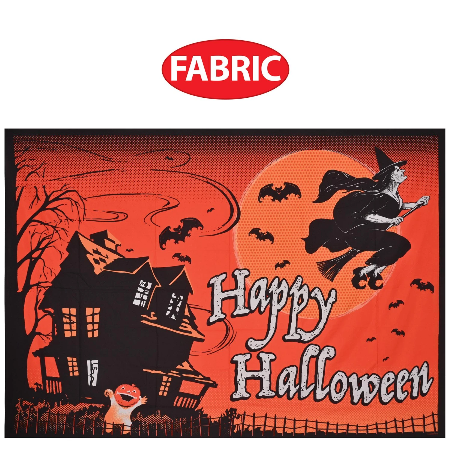 Measuring an impressive 5 feet tall by 7 feet wide, this backdrop provides a generous display area, making it a captivating addition to your Halloween decorations. Crafted from durable fabric, it ensures a vibrant and realistic portrayal of the vintage Halloween theme. For care, simply hand wash with cold water, tumble dry with no heat, remove promptly, and avoid bleach to maintain its bright colors and fine details.