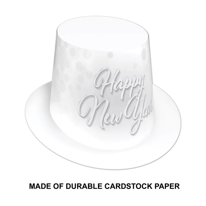 Our Whiteout New Year Hi-Hat is the perfect addition to your new years events. These hats are ideal for creating a festive atmosphere. 25 hats per case, making it easy to cater to gatherings of any size. These versatile items enhance the ambiance of any celebration. One size fits most adults.